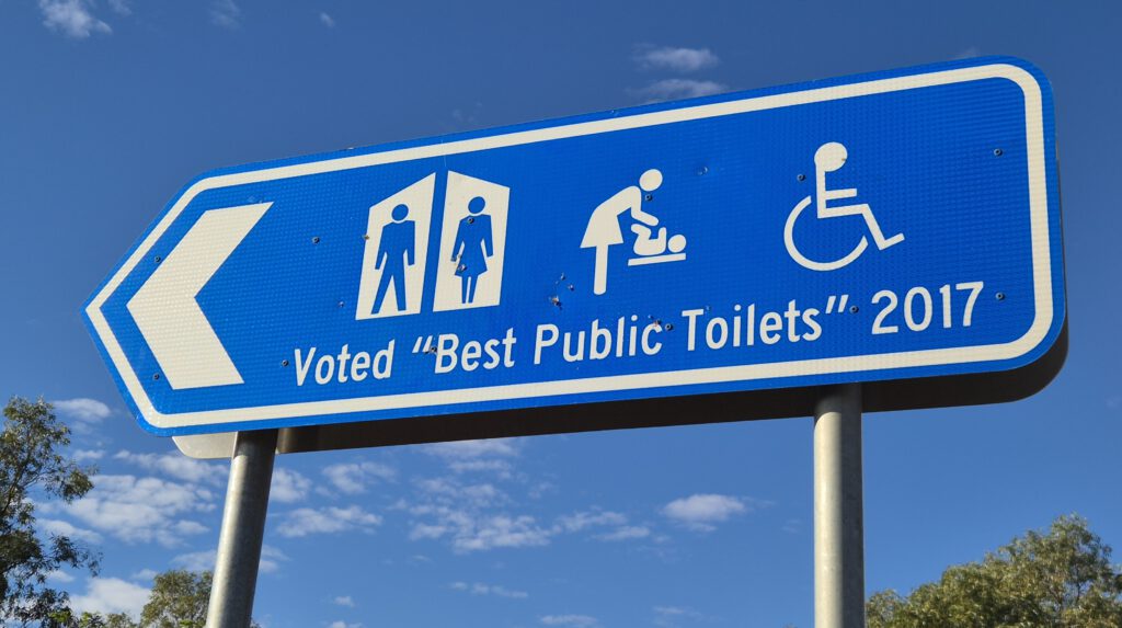 Als wir die Touristeninformation verließen, fanden wir draußen auf der Hauptstraße immerhin eine öffentliche Toilette. Und nicht etwa irgendeine! Nein, ein extra aufgestelltes Schild wies ganz offiziell darauf hin, dass sie im Jahre 2017 als „best public toilet“ ausgezeichnet wurde. Als mir klar wurde, dass wir offenbar schon vor dem touristischen Höhepunkt von Meekatharra standen, tat mir die Chefin der Touristinfo noch mal mehr leid. Und ich dachte bei mir: wann immer ich einen schlechten Tag haben sollte, würde ich zukunftig an sie denken und welch traurigen Job sie jeden Tag erledigen müsste.